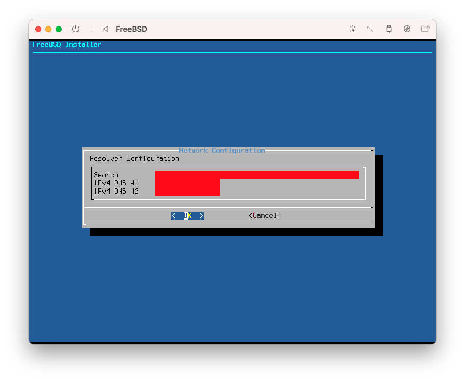 選擇主機名稱 (hostname)。由於此虛擬系統不做為網路服務器,名稱可以任取。「freebsd」是個還不錯的選擇: